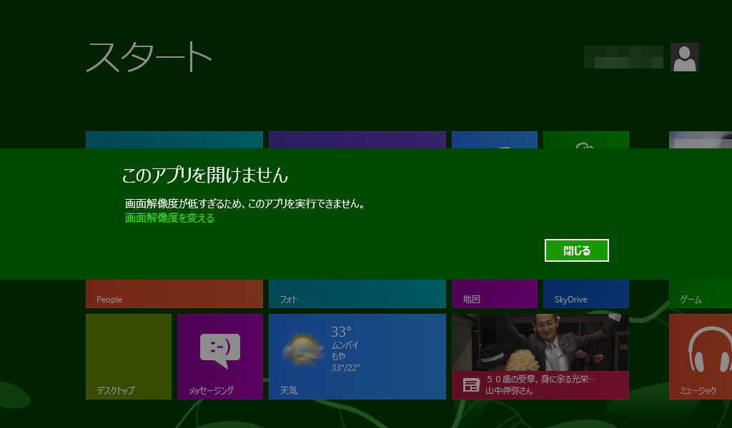 画面解像度の問題でアプリが使えないことは承知してたけど