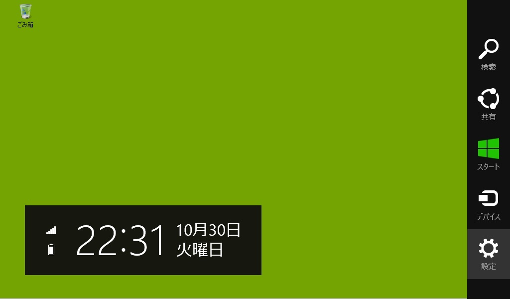 「チャーム」と呼ばれるアイコンメニューがスライドして出てくる。