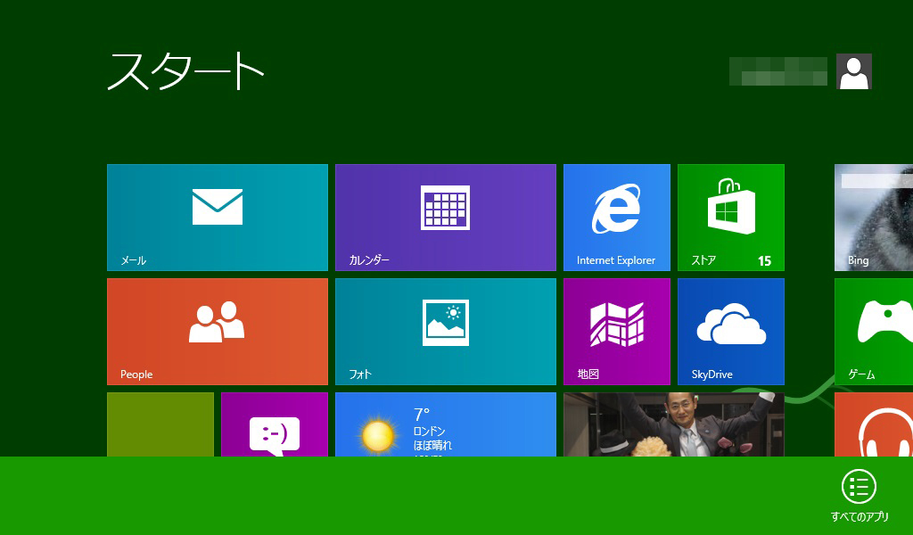 windowsボタンを押すと新スタートメニューに切り替わる。