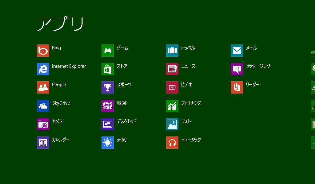 「すべてのアプリ」をクリックするとアプリ一覧に切り替わったので