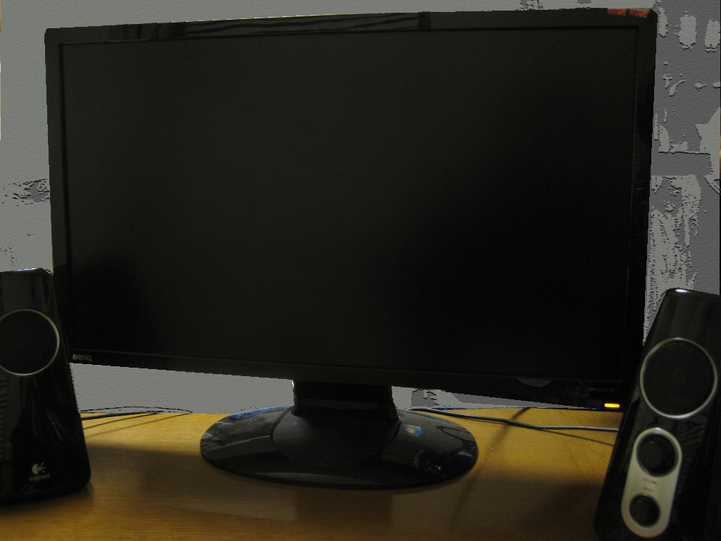 液晶モニタにデスクトップが表示される(ごみ箱が小さくなったの分かる?)
