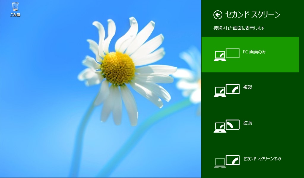 「セカンドスクリーンのみ」をクリックすると