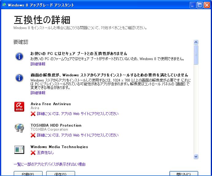 「互換性の詳細を見る」をクリックしすると詳細が見れる。