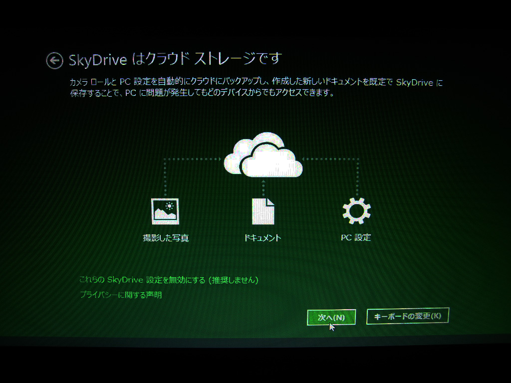 クラウドストレージ(Sky Drive)は分からない人もとりあえず→次へ。