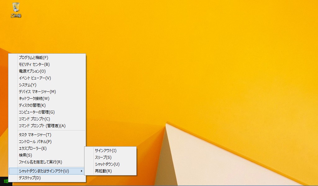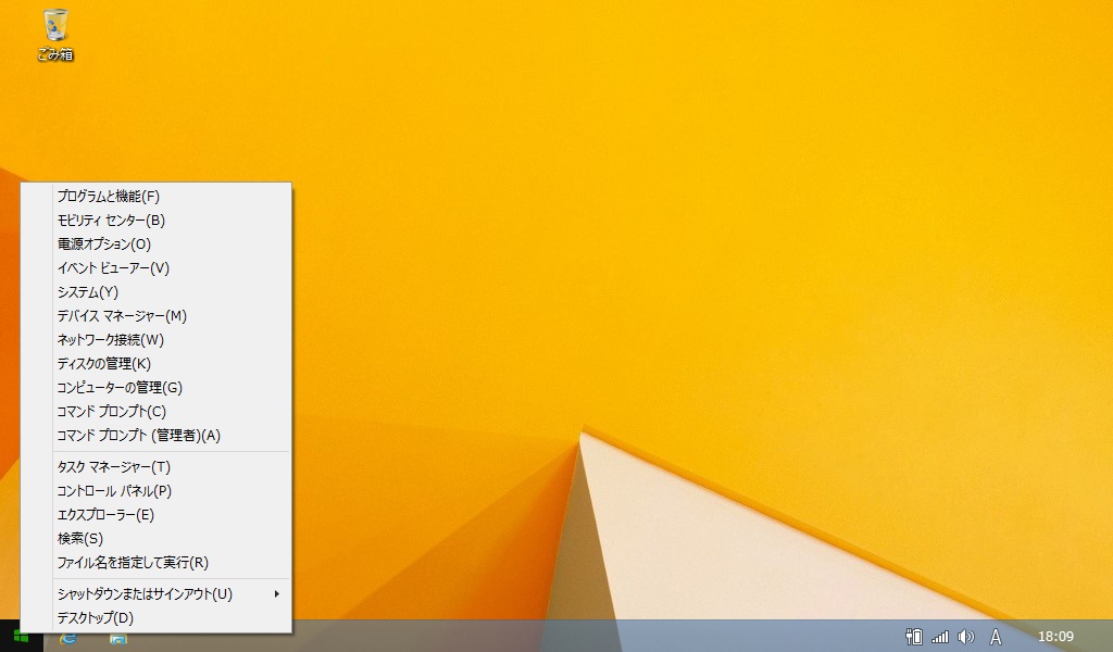 スタートボタン上で右クリックすると”スタートメニュー風”なやつが出ます。